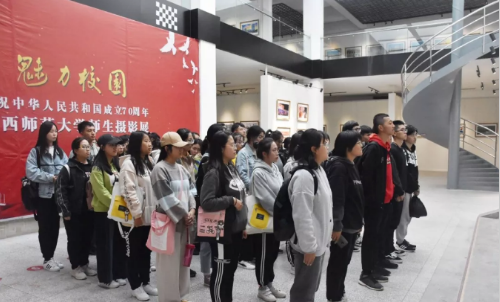 组织大一新生参观了“魅力校园——庆祝中华人民共和国成立70周年山西师范大学师生摄影展”。