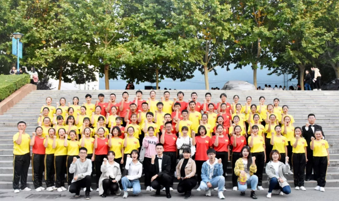 先后欣赏了十四组兄弟学院的精彩表演,小编更加期待我们社法人的合唱了!期待的搓搓手!终于,它来了,它来了,它带着微笑走来了!合唱团成员个个挺胸抬头,斗志昂扬,身着黄色、红色半袖,组成“70”图形,靓丽耀眼,为祖国母亲70周年大庆献上自己的一份贺礼。