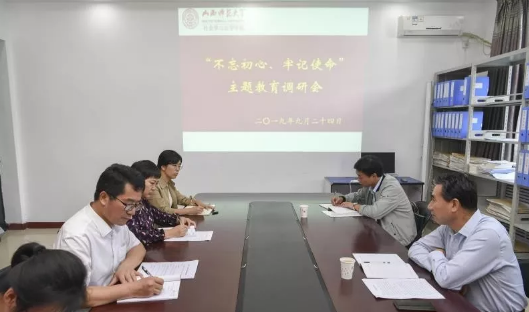 会议伊始,郝书记就调研的目的和意义进行了说明。他指出,希望大家围绕“不忘初心、牢记使命”主题教育前期学习研讨情况,结合学院党组织建设实际,就坚持党的领导、做到“两个维护”,严肃党内政治生活、严明党的政治纪律和政治规矩,发挥党员干部在事业发展中的引领与担当作用等方面发表意见和建议。
