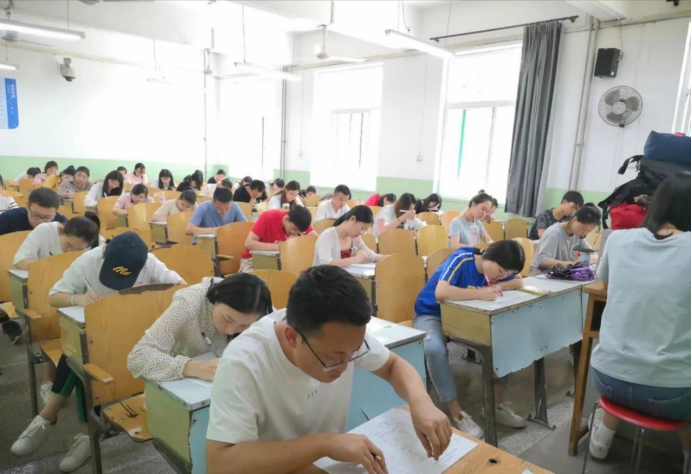 本次结业考试采取闭卷考试形式,试卷分值共100分,考试时间为90分钟,包括了填空题、简答题、论述题等三种题型,综合考查了学生入党积极分子对《中国共产党章程》、十九大报告、《中国共产党发展党员工作细则》等知识的掌握情况。考试开始前监考人员在桌子上粘贴印有考生考号和姓名的标签,要求考生将自己的书包、手机等放在讲台,准备好学生证以便核对。考试过程中各监考员认真负责,主考和巡考也到现场对考场纪律进行了检查,考场秩序井然有序。