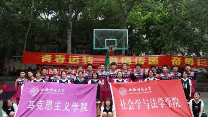 篮球队在1号场地展开了与地理科学学院的男篮对决。王小平老师到场观看,为队员们加油打气。