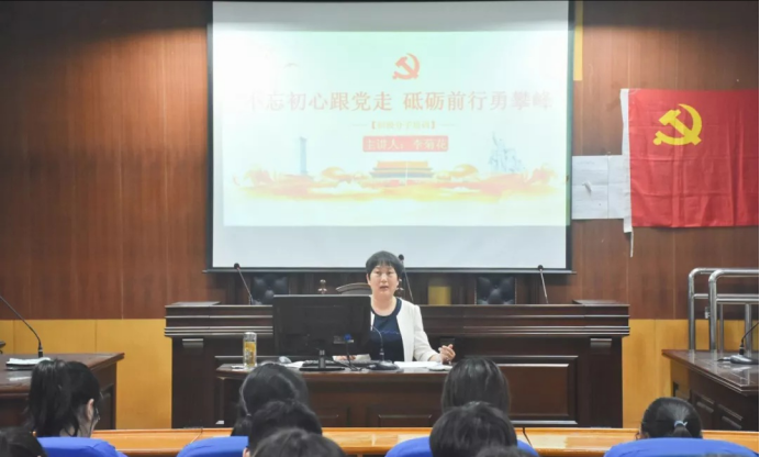 开班仪式结束后,由院党委书记李菊花做了题为“不忘初心跟党走,砥砺前行勇攀峰”的开班第一课,她带领同学们一起重温了习近平总书记在纪念五四运动100周年大会上的重要讲话,从五四运动精神、新时代青年的责任、如何身体力行做时代新人等方面,结合自己的学习感悟与同学们进行了交流分享。她要求,作为积极要求进步的青年学生,要不断深入学习习近平总书记系列重要讲话精神内涵,深刻理解习近平总书记对青年的关怀期望,用习近平新时代中国特色社会主义思想武装头脑,持续弘扬五四精神,增强“四个意识”、坚定“四个自信”、做到“两个维护”,树立远大理想,坚定理想信念,锤炼品德修养,勇于砥砺奋斗,练就过硬本领,做有理想、有信念、有作为、敢担当的时代新人!