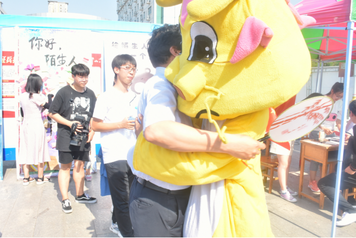 的活动。两项活动分别以匿名相送亲笔书信、互相拥抱彼此的形式传递真情,得到了现场师生的热情参与。一片欢声笑语中,大家彼此加深了沟通与了解,现场其乐融融,活动的气氛被不断推向高潮。