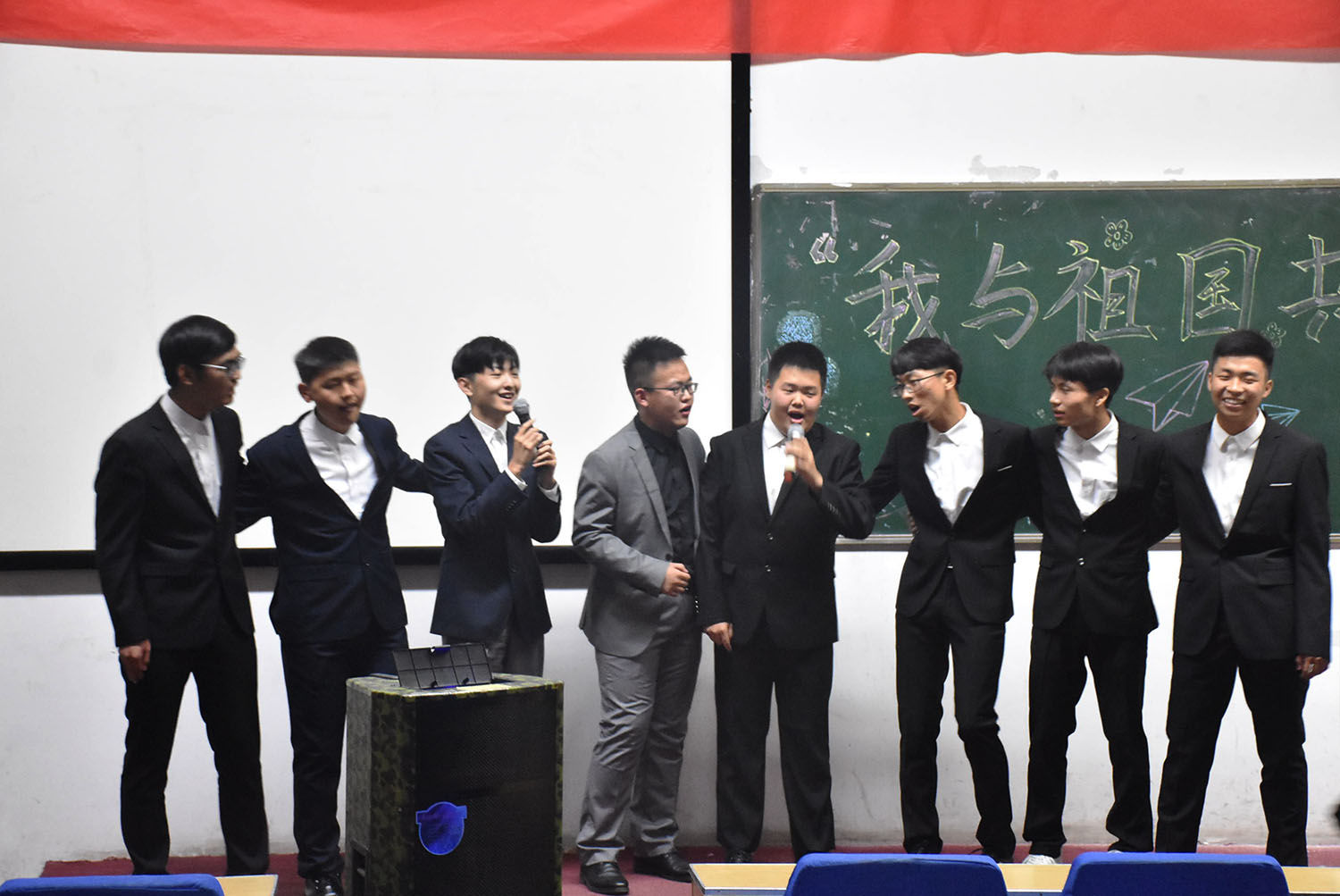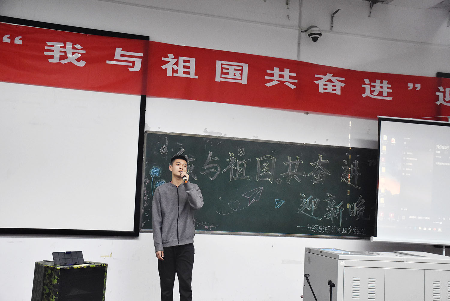 在05203教室举办了“我与祖国共奋进”迎新晚会,全体大一学生与部分大二学生参加此次晚会。