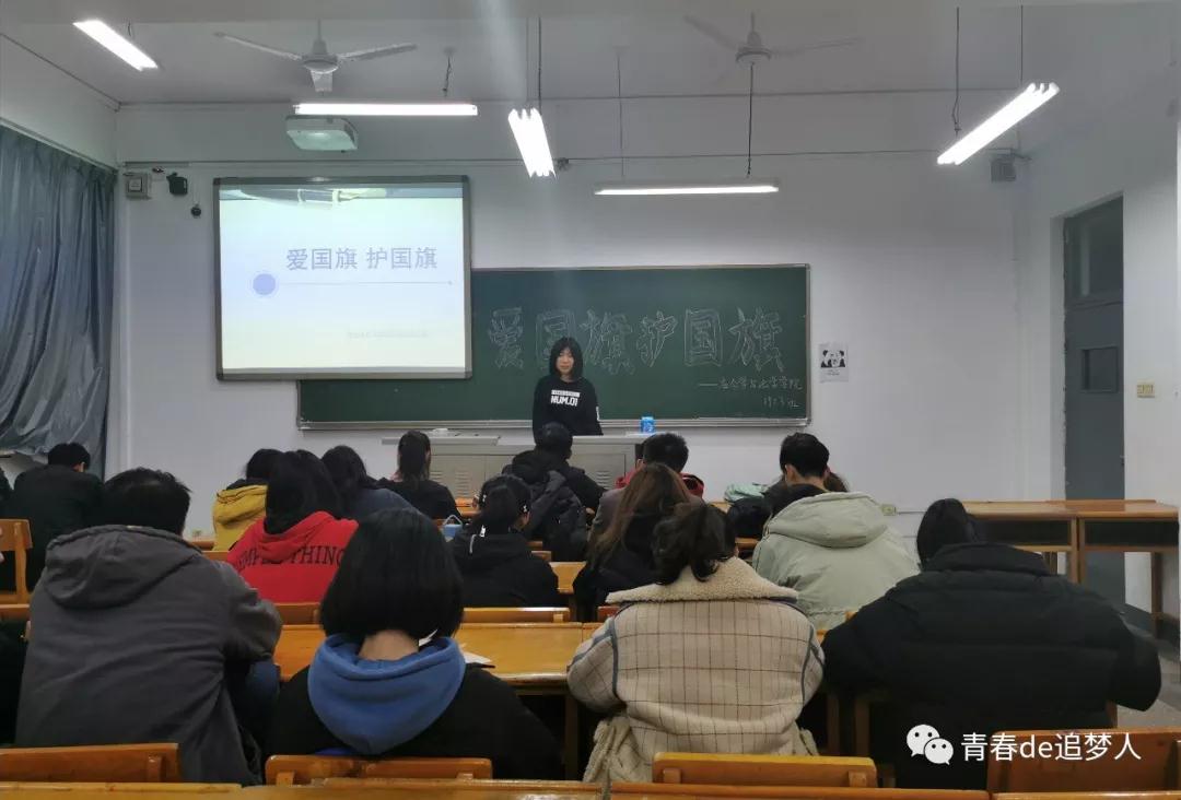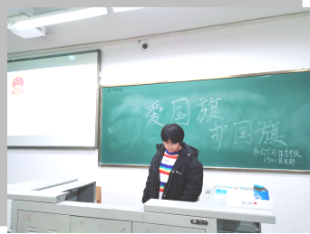 1901团支部于12305教室举办“爱国旗,护国旗”主题团日活动。