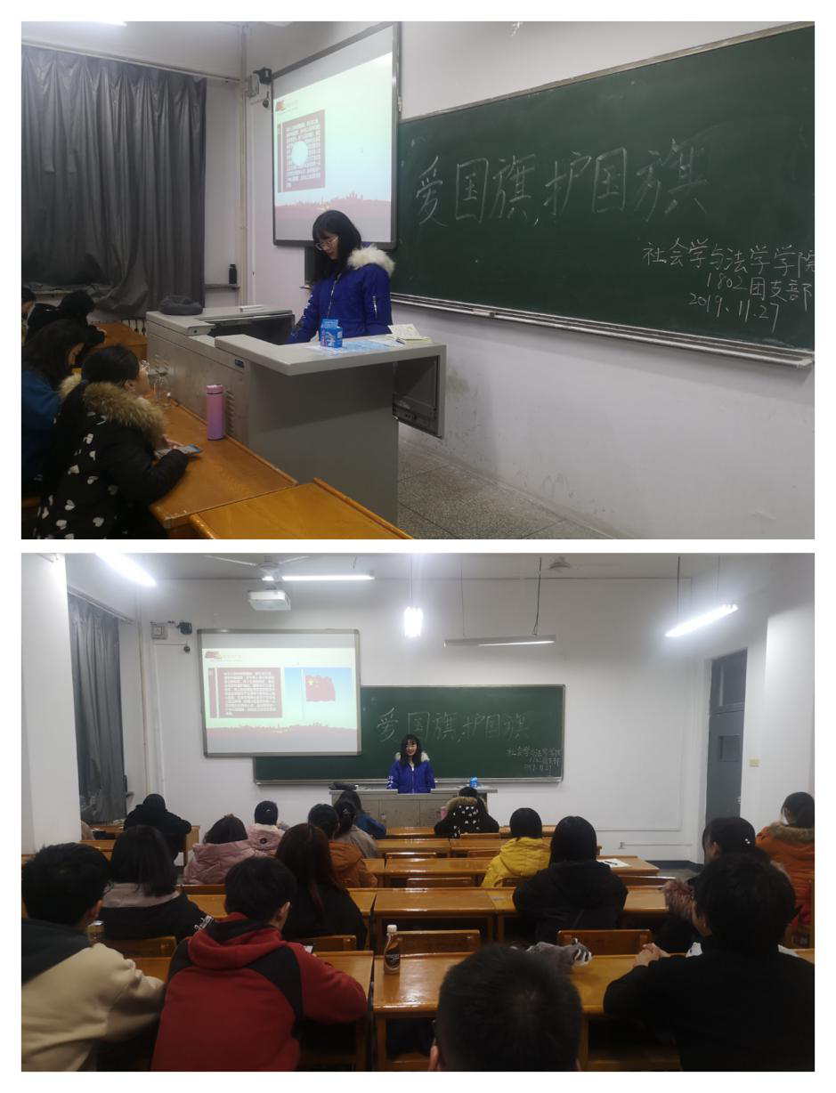 1801团支部在01204教室举办了“爱国旗,护国旗”主题团日活动。