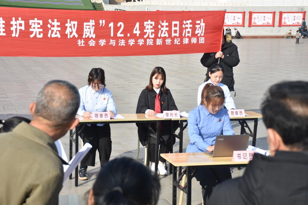 “12•4”是国家宪法日,今天同学们能以模拟法庭的方式进行法治宣传教育,相信未来同学们将在不断提高应用能力和实践水平的基础上继续为推进法治建设、弘扬法治精神做出自己的贡献。