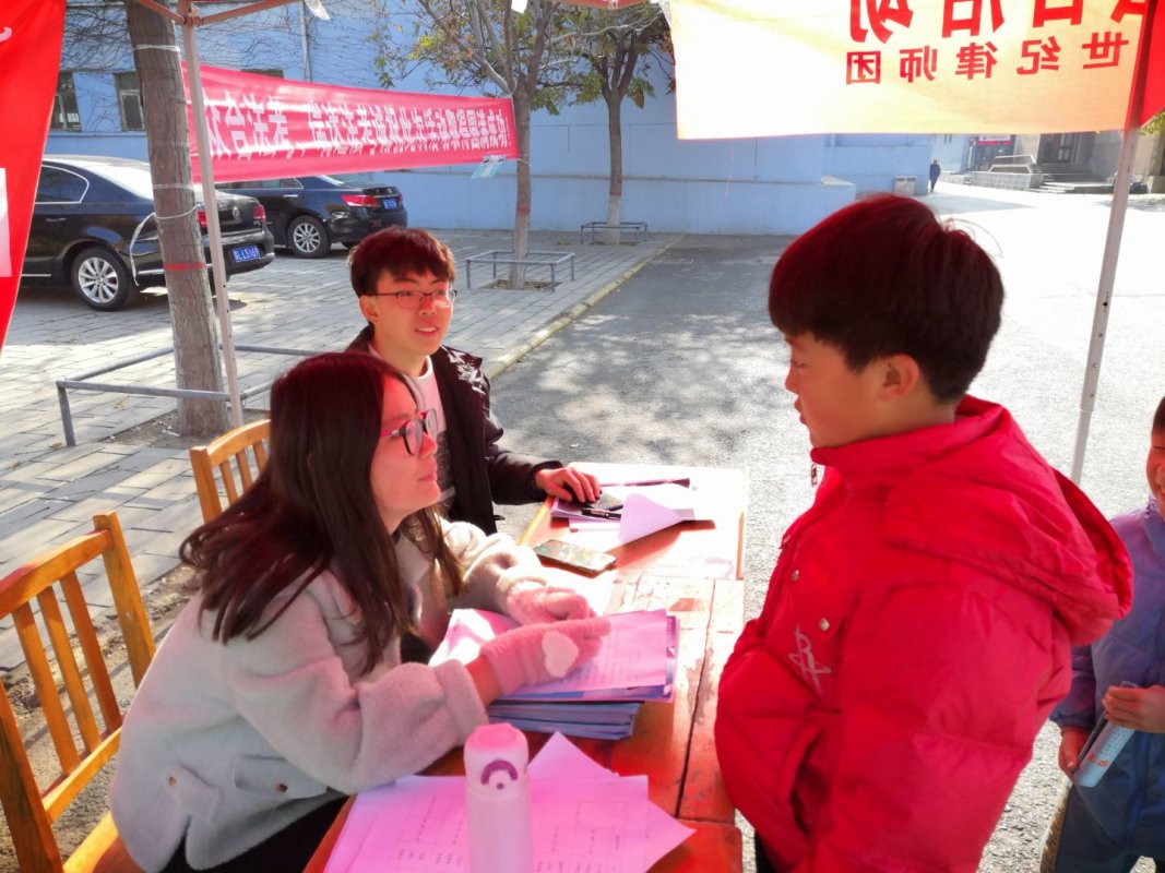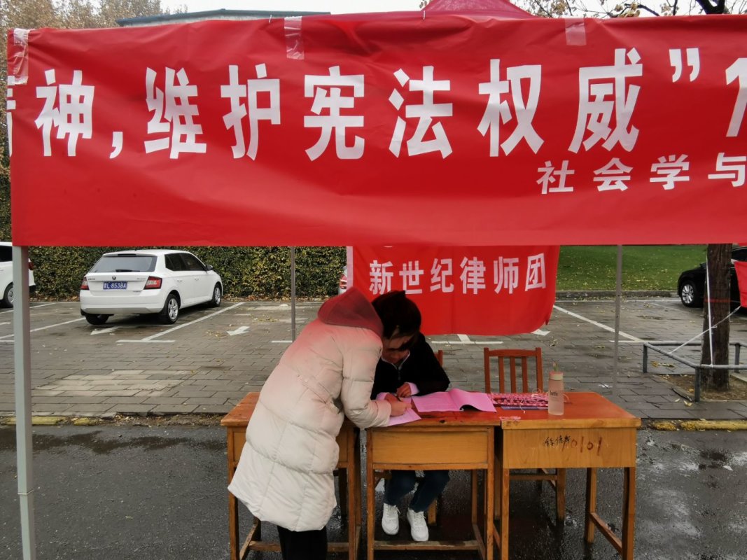 新世纪律师团于校医院门口举办宪法日宣传活动。