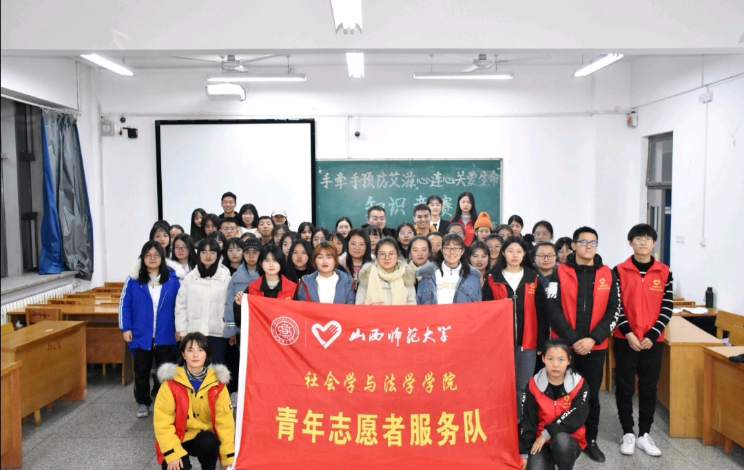 青年志愿者协会在10216教室举办了以“手牵手预防艾滋,心连心关爱生命”为主题的艾滋病知识竞赛活动。