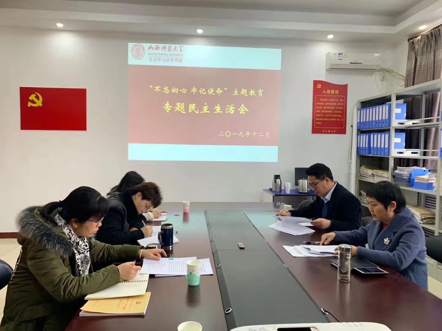 会议第三项,李书记围绕主题教育的“五个目标”,对主题教育开展以来取得的成就进行了盘点,李书记指出:在主题教育方针的指导下,班子全体成员在理论学习、思想政治、干事创业、为民服务等方面取得了长足进步;在学院工作中,班子成员密切联系师生员工,勤于职守,严于律己,为学院的长远发展奠定了坚实基础。