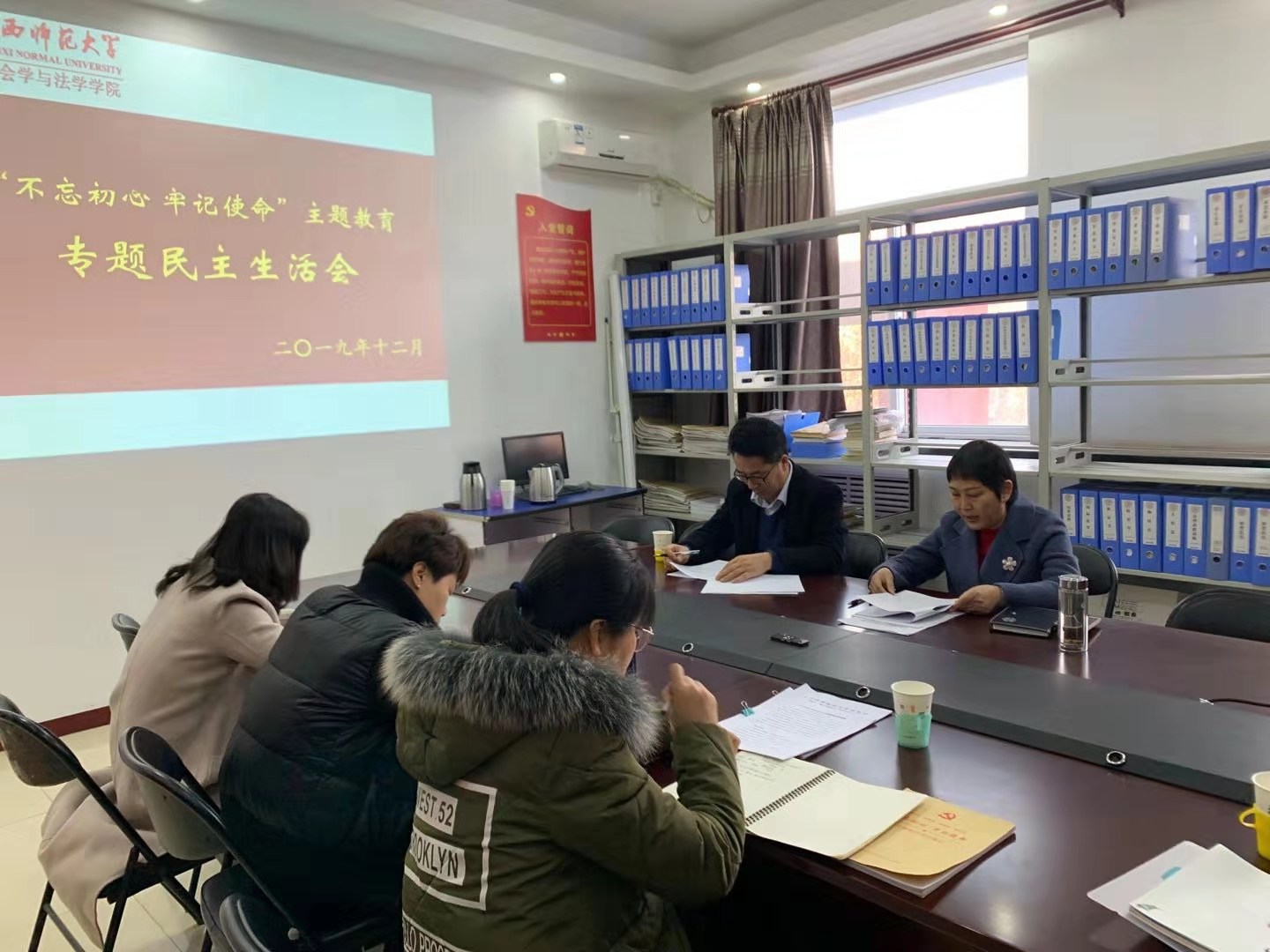 在一号教学楼会议室召开了“不忘初心、牢记使命”主题教育专题民主生活会。组织员樊鑫出席此次会议,全体处级干部参加会议。会议由党委书记李菊花主持。