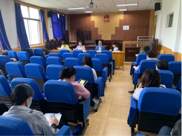 于模拟法庭召开“三育人”推荐评选工作会议,全体教职员工参加本次会议。