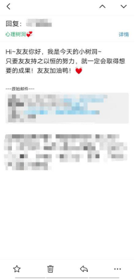 活动开始,首先由青年志愿者协会活动负责人给各班长发布QQ邮箱地址以及活动要求和目的。随后,各班负责人下发给学院学生,组织同学们积极参与,并通过该邮箱发送自己的烦恼困惑等。最后,活动负责人收到邮件后进行回复,解答同学们问题,并给予温馨回复,双方形成良好互动,进而缓解了同学们的心理压力。