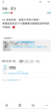 青年志愿者协会开展了以“树洞回音,温暖心灵”为主题的线上心理减压活动。
