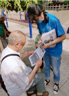 7月15日,是三下乡活动的第三天,我主要针对街上坐着乘凉的村民们进行了宣传。刚下过雨,天气较为凉爽,马路两边的台阶上坐着不少村民。我给他们发了传单,介绍了我们这次活动的内容和目的,并且对一些他们有疑虑法律小常识做出了解释,看到村民们愿意去了解基本的法律知识我感到自己的努力没有白费。