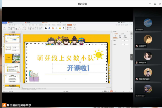 七月十四日,通过腾讯会议的形式,杜诺岩同学对孩子们进行了新冠肺炎知识的普及并讲解了一些简单的防护措施。本次教学课堂有效提高了小朋友们对新冠疫情的认识水平,增强了他们的疫情防范意识。