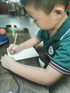 今天上午主要是给孩子进行线下作业辅导,经过昨天的普通话教学,我发现小高同学在完成今天的语文作业的时候出现的拼写错误比以往要少了,可能真的是把我昨天总结的拼音学习技巧记在脑子里了吧。在我的帮助下,小高同学顺利地完成了语文作业。