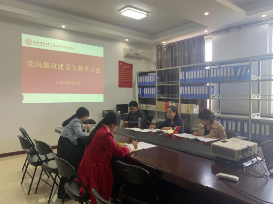 于多功能会议室召开党风廉政建设专题学习会议,会议由院党委书记李菊花领学,全体班子成员参与此次会议。