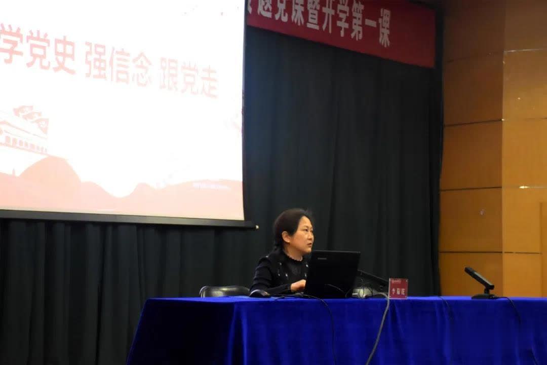 党委书记李菊花主讲,院党委副书记于宝钗主持,全体学生党员及入党积极分子参与此次学习。
