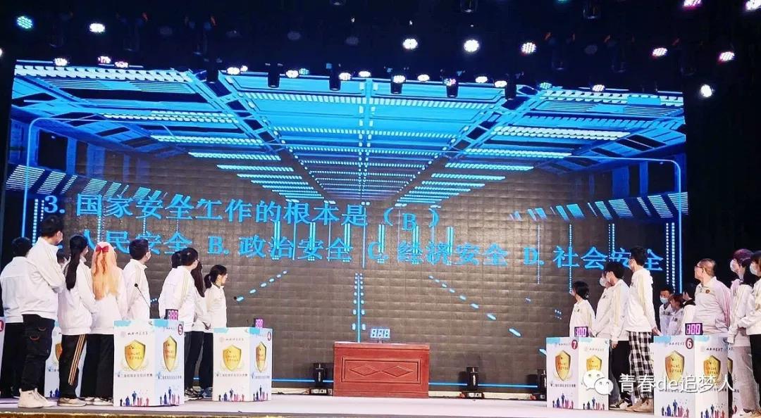 为深入贯彻落实习近平总书记总体国家安全观要求,加强大学生安全教育,有效提升大学生安全教育意识,2021年3月12日下午三点,我校在大礼堂成功举办了第二届 “青春心向党,安全共担当”校园安全知识竞赛半决赛。