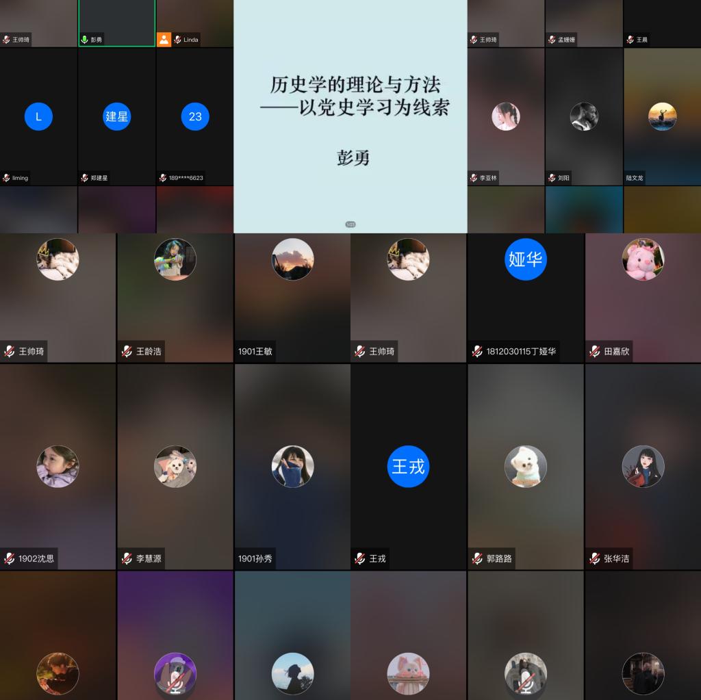 特邀中央民族大学历史文化学院院长彭勇教授通过腾讯会议作“历史学的理论与方法——以党史学习为探索”专题报告。此次讲座由院党委李菊花书记主持,200余名师生参加学习。