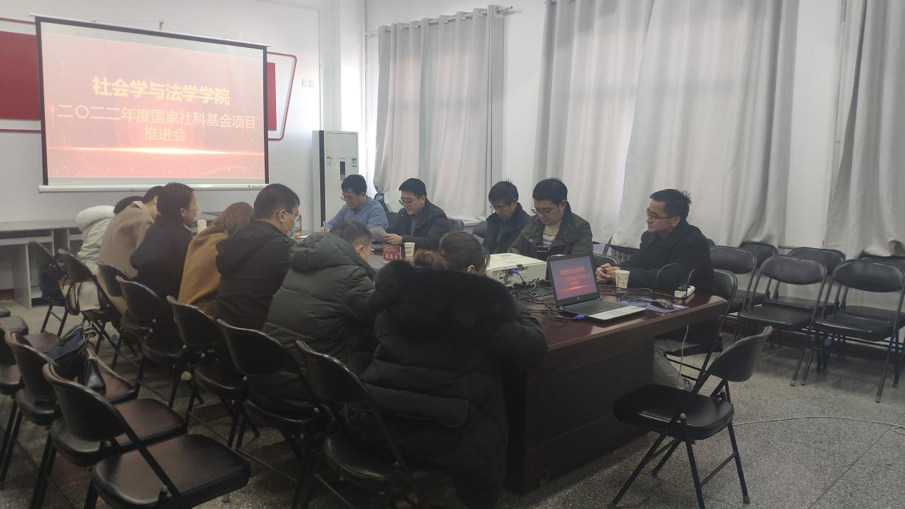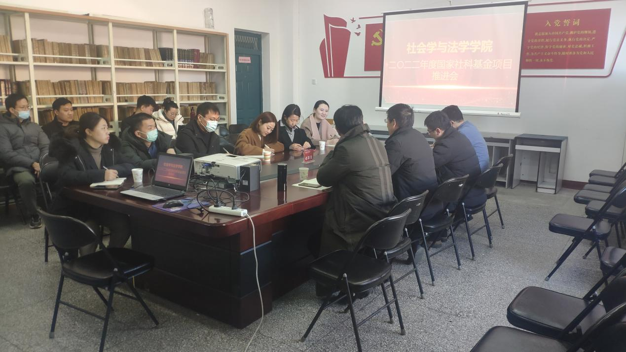 国家社科基金项目的申报工作,2021年12月17日下午,二〇二二年度国家社科基金项目申报推进会在一号教学楼三层多功能会议室举行,我校社科处赵跃先处长和董斌副处长莅临指导。会议由副院长安晖副教授主持,院长王小平教授和学院部分教师参加了会议。