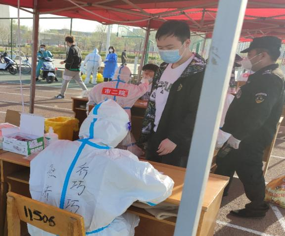 院党委副书记、院长王小平在组织学院防疫工作的同时,根据学校安排担任书香广场核酸检测点组长,与教师志愿者一起引导参检学生有序排队,协助医务人员进行个人信息采集,维护检测现场秩序。