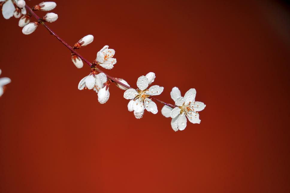 “雪慢慢融化,终于想出去晒晒太阳,看见了花朵张开翅膀”