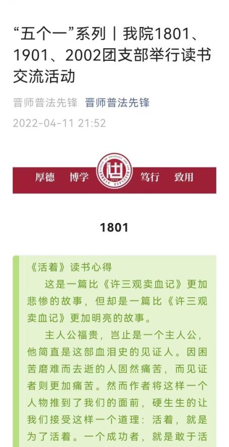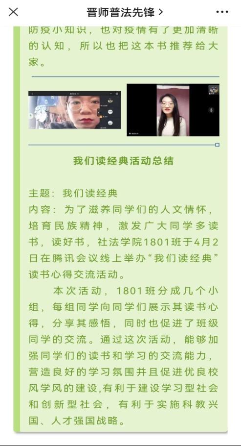 举办了“踏书籍阶梯,迈心灵彼岸”系列线上读书心得交流分享会。活动受到了青年大学生的大力支持和广泛参与,在疫情防控的特殊时期,持续营造了良好的学习氛围,同学们感受阅读魅力、增进思想交流,为促进优良校风学风的建设有积极意义。