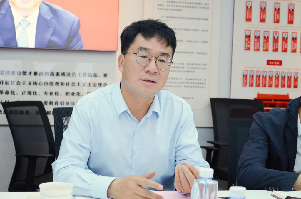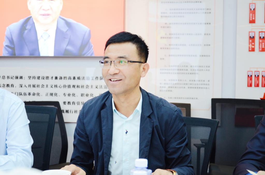院党委李永强老师从建立法学生实习实训基地、开展法律事务指导、引进实务案例讲解课程及如何打造联合科研平台、法律专硕学位点建设等深度合作内容和与会人员进行交流展望。