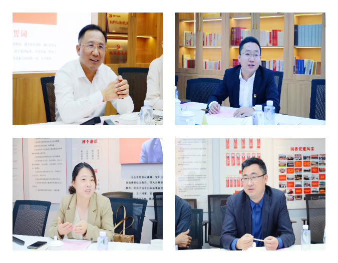 党委李永强老师、院长王小平老师、副院长韩卫平老师、法学系主任刘龙新老师与国晋所常委会主任牛振宇、主任郭宏伟、党总支书记王莹及部分青年律师进行了座谈交流。