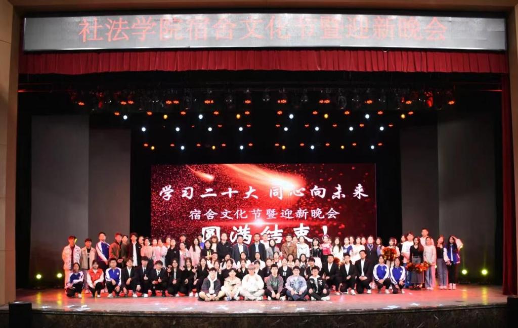 于北区文化艺术交流中心举办了宿舍文化节暨迎新晚会。院党委书记李永强、院长王小平、院党委副书记李大勇、副院长单云慧、院团委书记郝兴雅、王辰老师出席,社法学院全体本科生参加晚会。