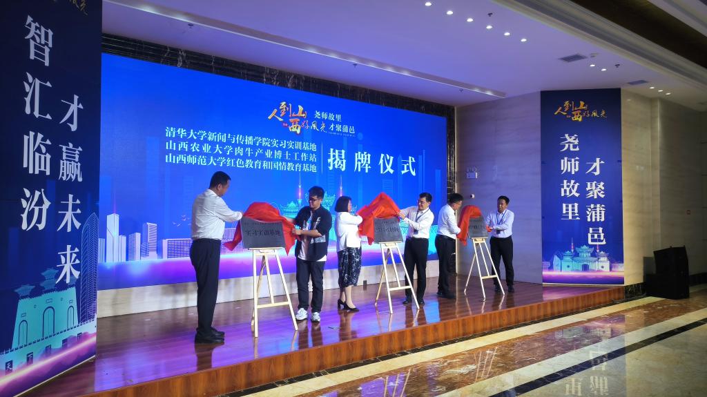 最后,副院长安晖与蒲县宣传部长刘俊绒,共同为山西师范大学红色教育和国情教育基地揭牌。