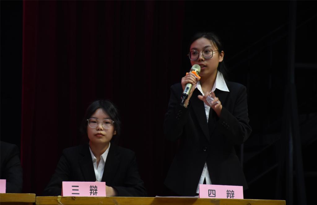 赛场上辩手言语滔滔,赛场下观众也相继叹好。整个现场辩论双方“针锋相对”,气氛更是随着双方愈演愈烈的攻辩而被烘托到了极点。最后的总结陈词环节,双方以清晰的思路和巧妙的陈词结尾。正反双方虽已偃旗息鼓,赛场下观众们的沉思却还在继续。