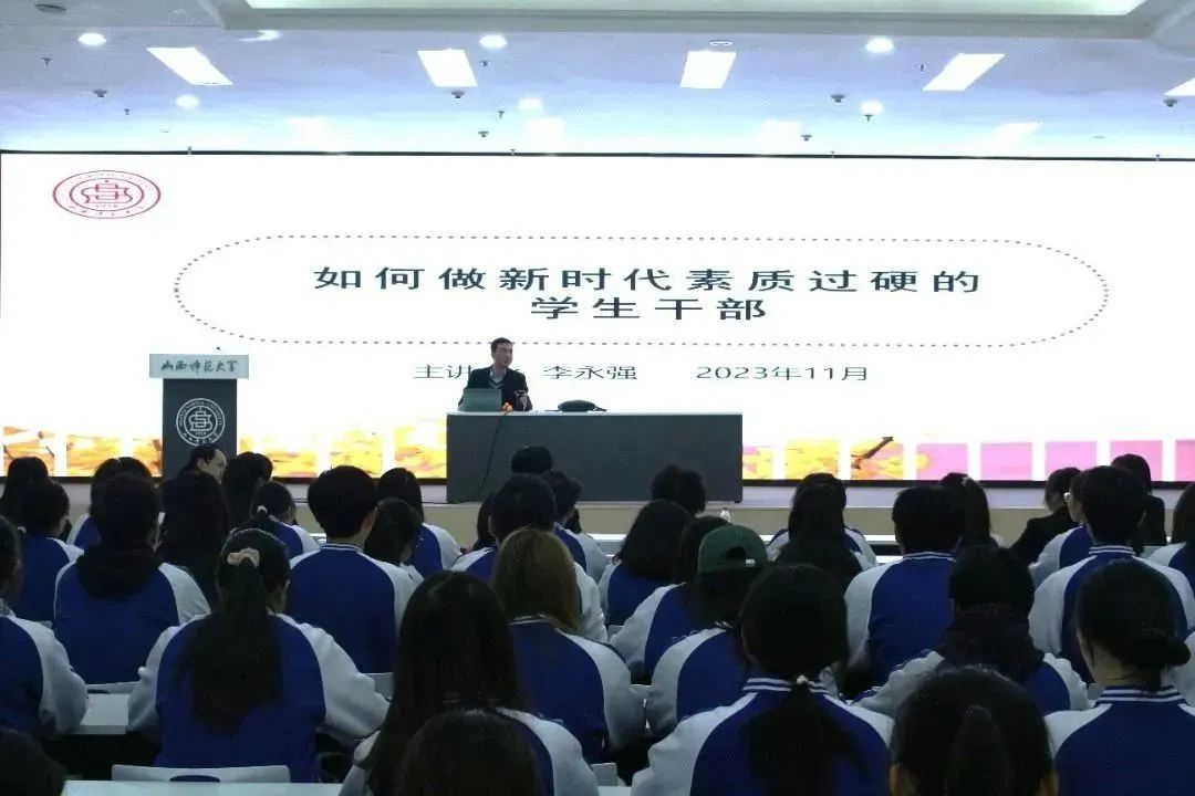 李永强书记从给四个思考题进行引入,结合此次活动背景,从“理解学生骨干的深刻内涵,塑造学生骨干的良好形象,探寻优秀学生骨干的实现路径,总结学生骨干的实践经验”四个方面出发,与“青马工程”相结合,向青年学生讲述如何做新时代素质过硬的学生骨干。