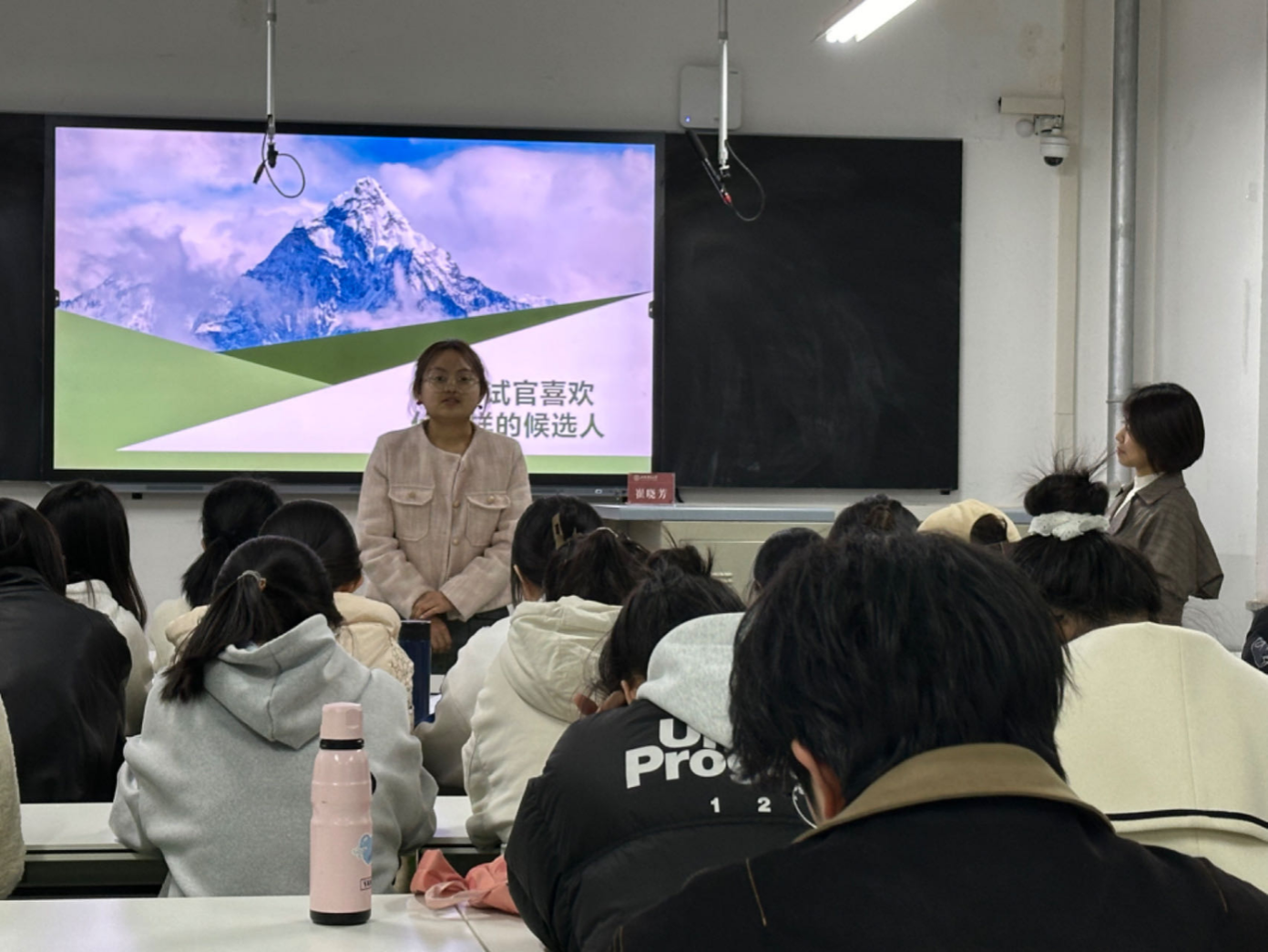 崔晓芳从面试形式、面试礼仪、面试自我介绍练习、模拟面试四方面展开培训。她就面试的目的,面试前的思想准备、仪容仪表准备、专业知识准备和“刻意”练习等方面结合实际案例进行详细讲解。她指出,面试官喜欢积极主动、注重细节、有时间观念的候选人,要充分展现出大学生自信活力的一面,不必太过紧张和拘谨。讲座过程中还开展了分组面试练习,4位同学结合自身经历做了面试分享,崔晓芳给予点评指导。同学们纷纷表示,此次讲座对于掌握面试技巧、提升自身面试能力、增强面试信心具有重要意义。
