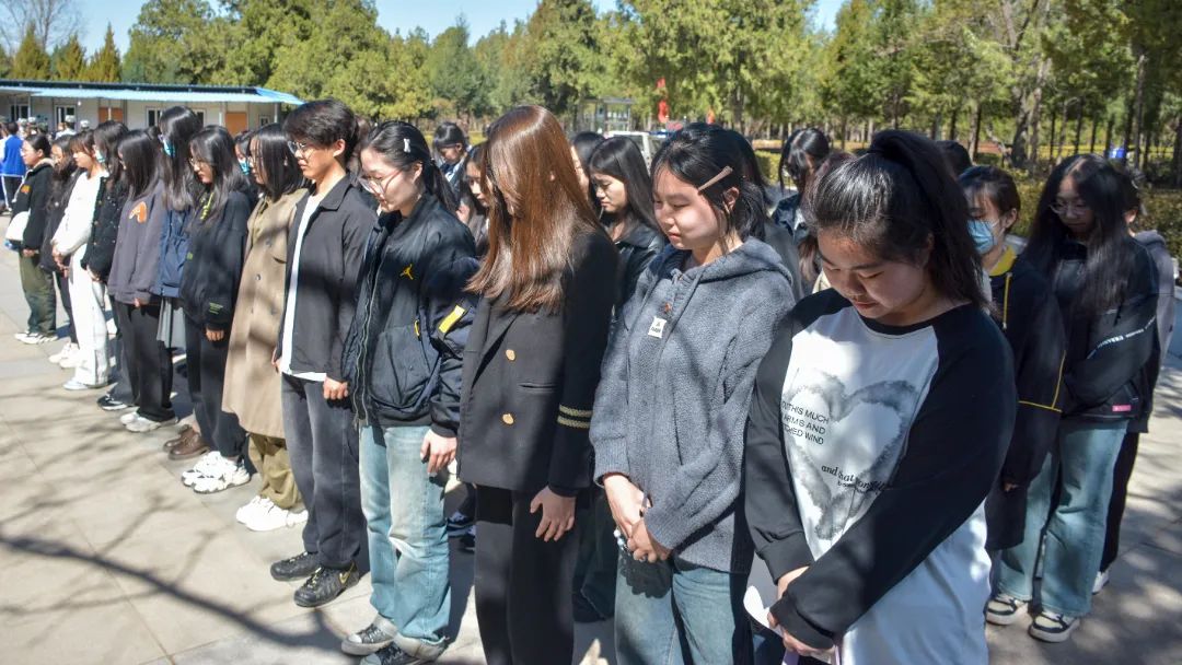 随后,全体人员肃立,默哀一分钟。在这一分钟的静默中,我们仿佛在与为国家和人民英勇献身的烈士们交流,感受他们坚定的信念和崇高的精神。默哀结束后,陵园里响起了庄严的国歌,歌声中饱含着对烈士们的敬仰与怀念。