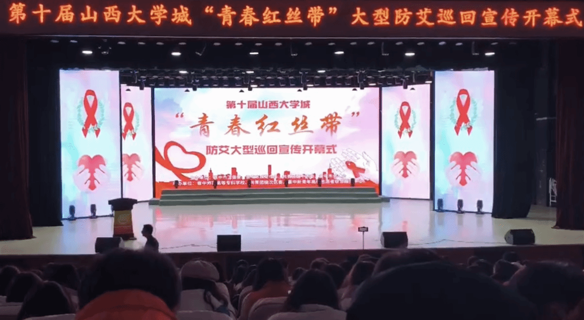 青年志愿者协会于11月30日前往晋中师范高等专科学校大礼堂,参加第十届山西大学城“青春红丝带”大型防艾宣传活动开幕式。
