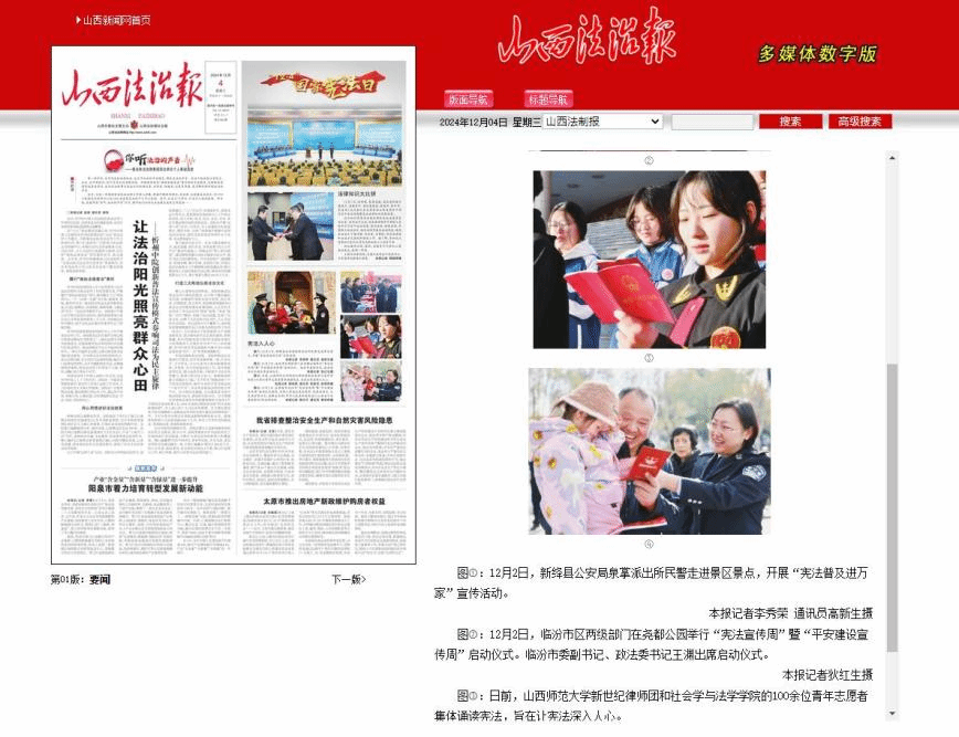 新世纪律师团主办的宪法周系列宣传活动被中国报道传媒视窗、学习强国、山西日报、山西法治报等多个媒体报道。