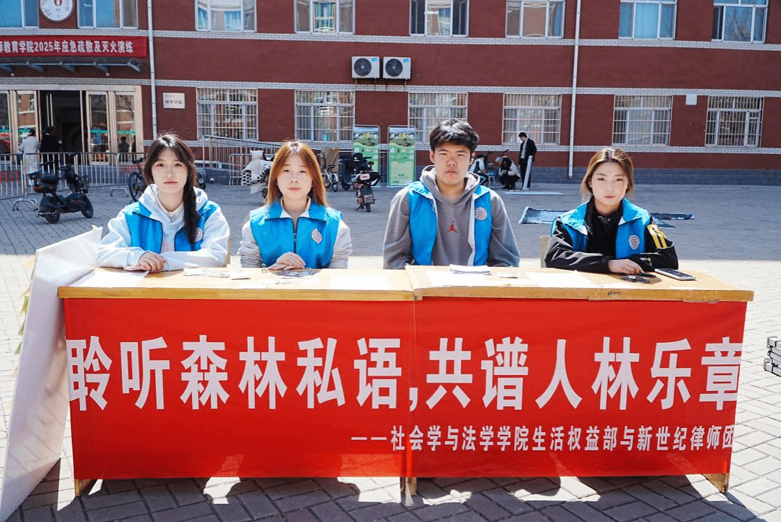 生活权益部与新世纪律师团在南区六号教学楼前共同举办了“聆听森林私语,共谱人林乐章”系列活动,吸引了全校师生广泛参与。