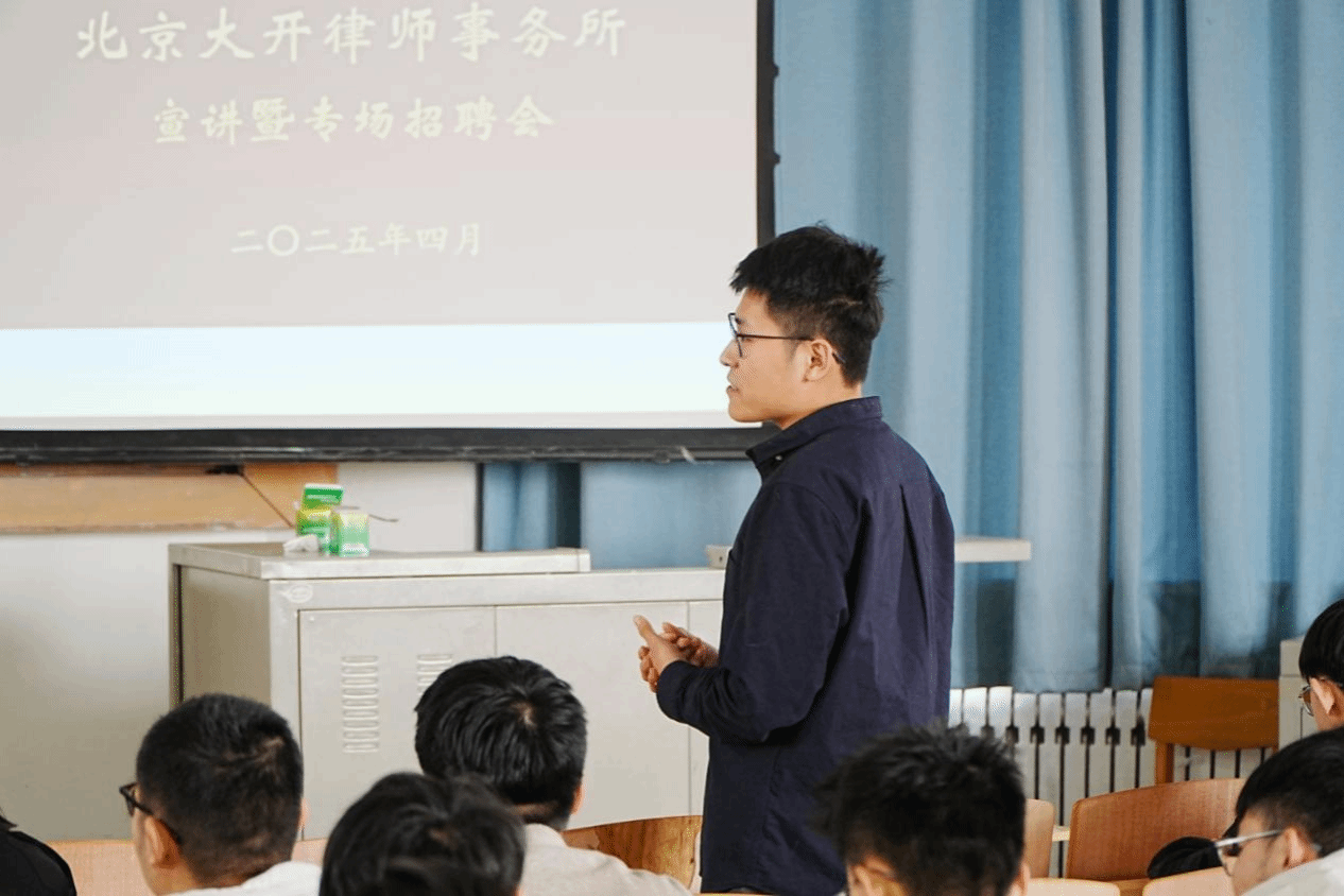 在南区3408教室举办了北京大开律师事务所专场招聘会,本次招聘会由安晖主持。