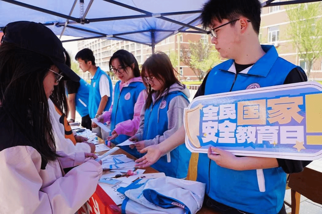 青年志愿者协会、生活权益部、新世纪律师团与校保卫部在六号教学楼前联合举办“筑牢校园安全防线,共护国家安全壁垒”国家安全日主题活动。
