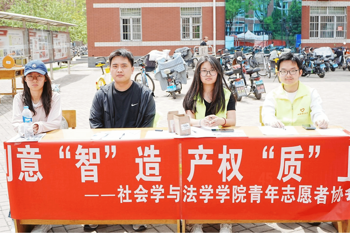 青年志愿者协会于4月26日在南区6号楼前开展了"创意'智'造,产权'质'上"主题活动。