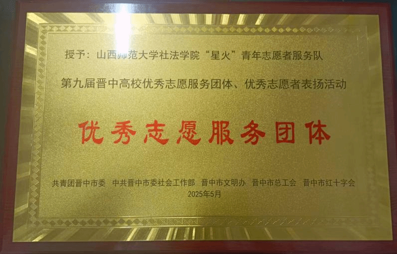 星火青年志愿者服务队凭借卓越表现,荣膺“优秀志愿服务团体”殊荣。